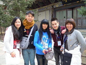 五一勞動(dòng)節(jié),2010年的優(yōu)秀明星團(tuán)隊(duì)在導(dǎo)游的引導(dǎo)下乘坐豪華大巴,心情愉快的參拜了世界五大佛教圣地之一五臺(tái)山?!暗弁鯇⑾喑莸?,宗宿神仙修煉天。靈鷲和諧白鶴騰,華夏兒女興家邦?!蔽迮_(tái)山寺廟鱗次櫛比,佛塔摩天,殿宇巍峨,金碧輝煌,是中國(guó)歷代建筑薈萃之地。在這里,我們燒香、拜佛,用虔誠(chéng)的朝拜表達(dá)祈求健康、渴求幸福的美好心愿。